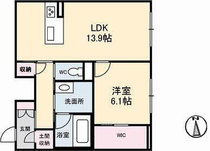 LDK13.9 洋室6.1 ※1畳=1.62m2)