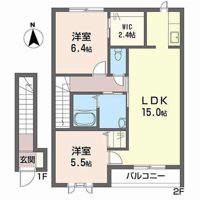 LDK15 洋室5.5 洋室6.4 ※1畳=1.62m2)