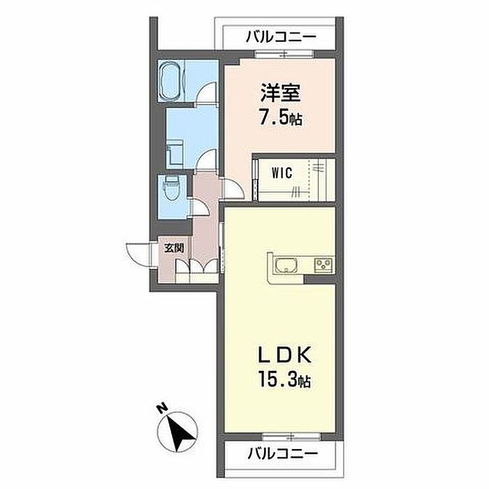 洋室7.5 LDK15.3 ※1畳=1.62m2)