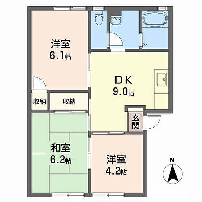 DK9 洋室6.1 洋室4.2 和室6.2 ※1畳=1.62m2)