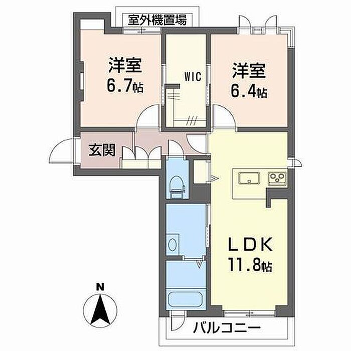 LDK11.8 洋室6.4 洋室6.7 ※1畳=1.62m2)