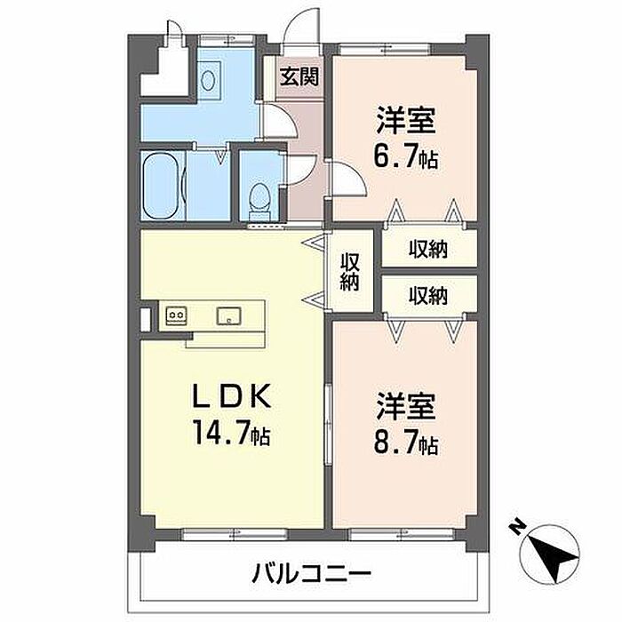 LDK14.7 洋室8.7 洋室6.7 ※1畳=1.62m2)