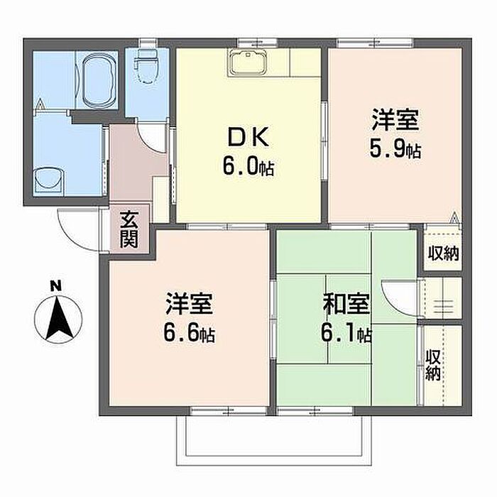 DK6 洋室6.6 洋室5.9 和室6.1 ※1畳=1.62m2)