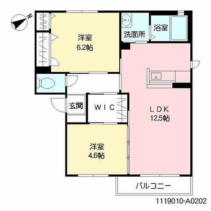 LDK12.5 洋室4.6 洋室6.2 ※1畳=1.62m2)