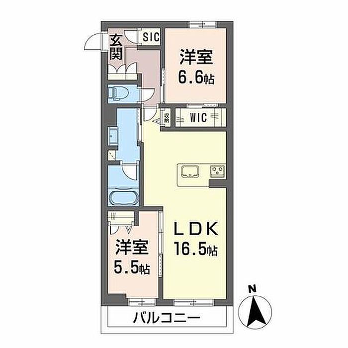 洋室6.6 洋室5.5 LDK16.5 ※1畳=1.62m2)