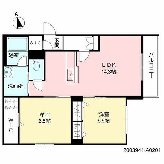 LDK14.3 洋室6.5 洋室5.5 ※1畳=1.62m2)