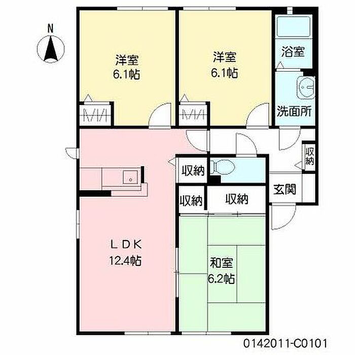 LDK12.4 和室6.2 洋室6.1 洋室6.1 ※1畳=1.62m2)