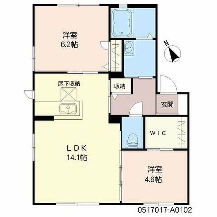 LDK14.1 洋室4.6 洋室6.2 ※1畳=1.62m2)