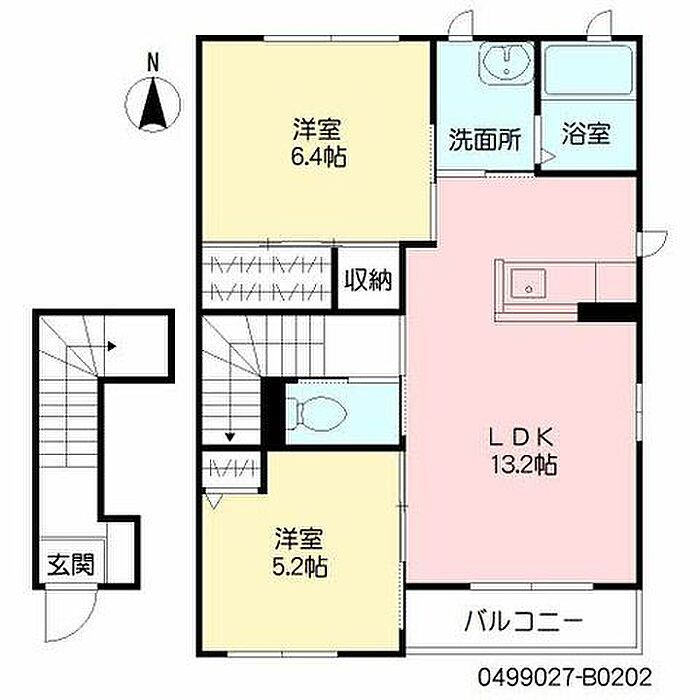 LDK13.2 洋室6.4 洋室5.2 ※1畳=1.62m2)