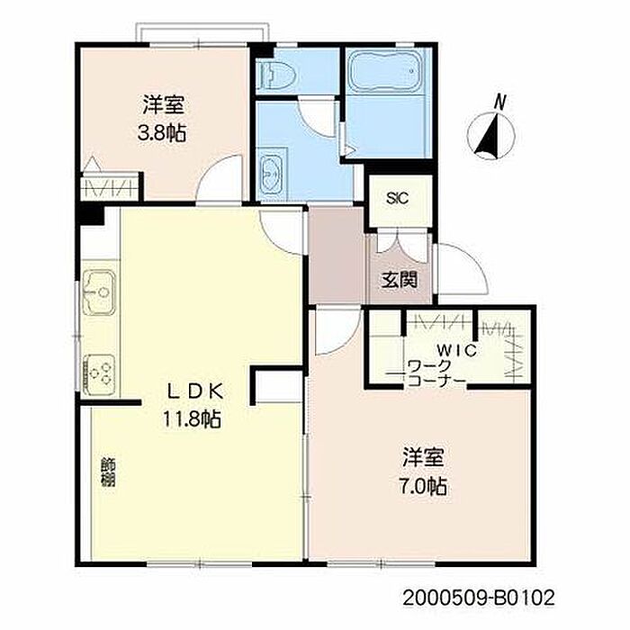LDK11.8 洋室7 洋室3.8 ※1畳=1.62m2)