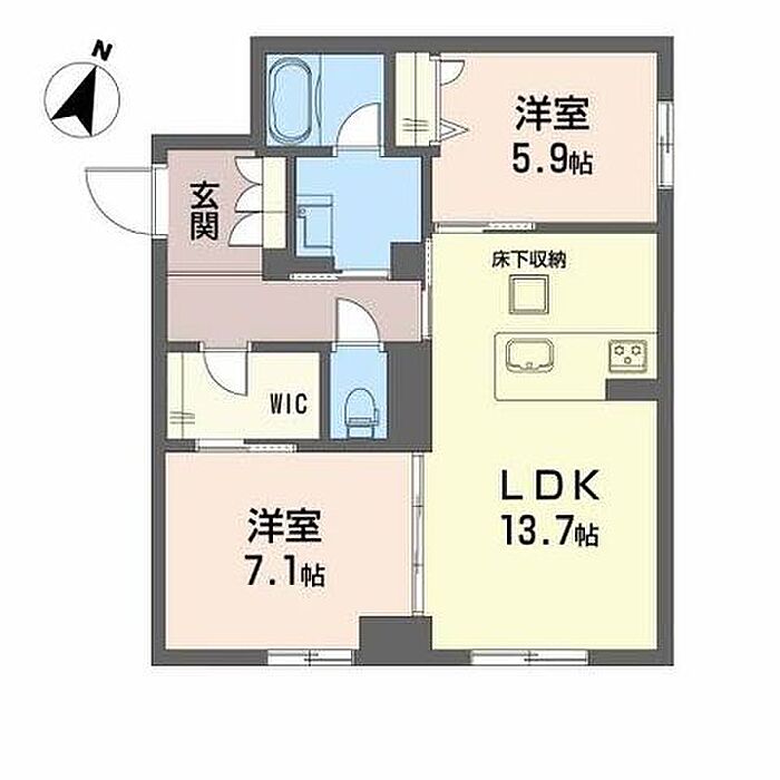 洋室7.1 洋室5.9 LDK13.7 ※1畳=1.62m2)
