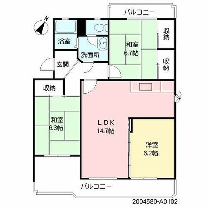 LDK14.7 和室6.7 和室6.3 洋室6.2 ※1畳=1.62m2)