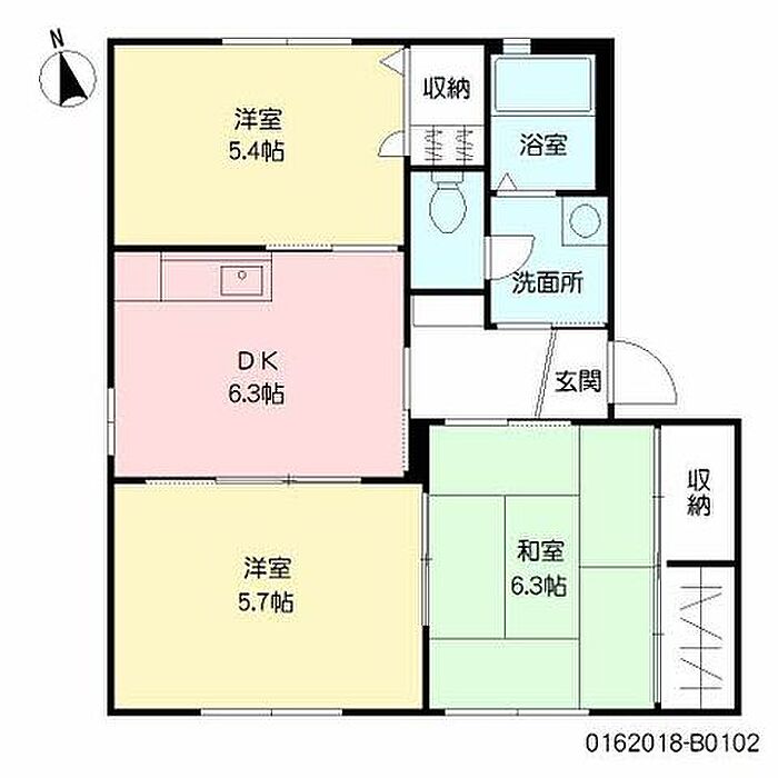 DK6.3 和室6.3 洋室5.4 洋室5.7 ※1畳=1.62m2)
