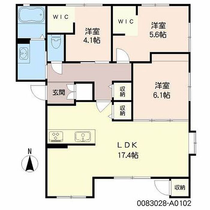 LDK17.4 洋室6.1 洋室5.6 洋室4.1 ※1畳=1.62m2)