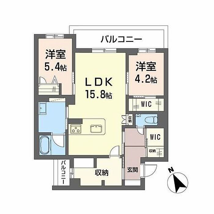 LDK15.7 洋室5.4 洋室3.9 S4 ※1畳=1.62m2)