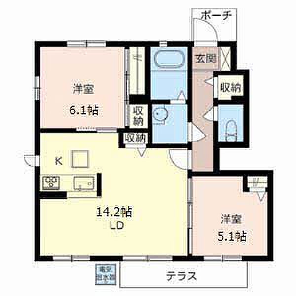 LDK14.2 洋室6.1 洋室5.1 ※1畳=1.62m2)