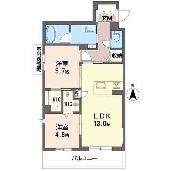洋室5.7 洋室4.8 LDK13 ※1畳=1.62m2)