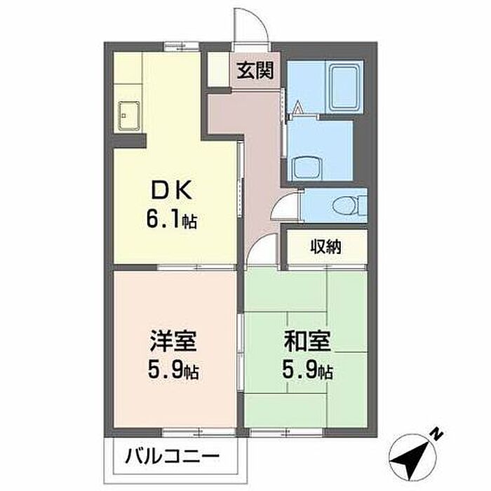 DK6.1 和室5.9 洋室5.9 ※1畳=1.62m2)