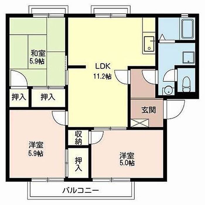 和室5.9 洋室5 洋室5.9 LDK11.2 ※1畳=1.62m2)