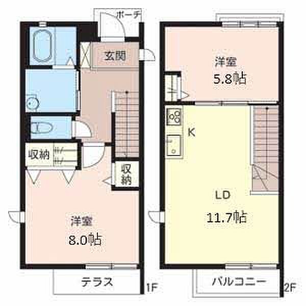 洋室8 洋室5.8 LDK11.7 ※1畳=1.62m2)