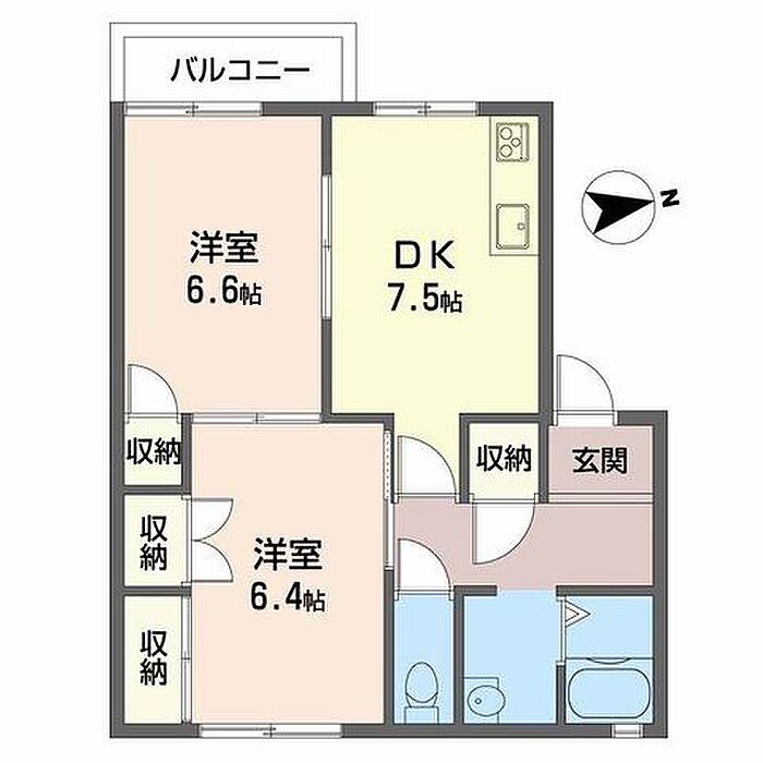 DK7.5 洋室6.6 洋室6.4 ※1畳=1.62m2)