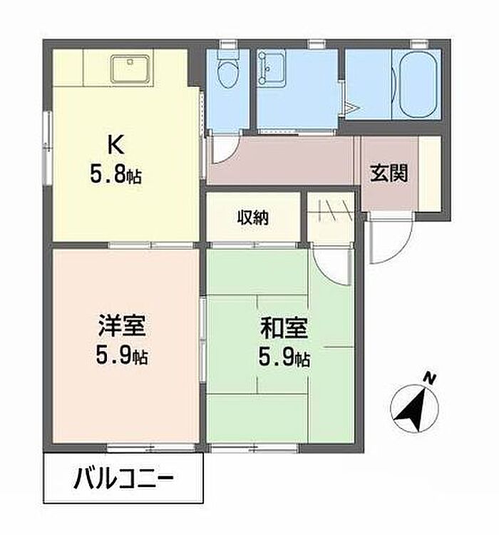 K5.8 和室5.9 洋室5.9 ※1畳=1.62m2)
