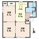 洋室5.9 洋室6.1 洋室6.7 DK6.7 ※1畳=1.62m2)