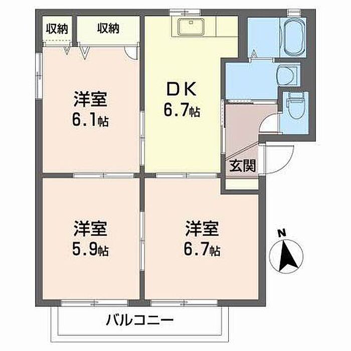 DK6.7 洋室6.7 洋室5.9 洋室6.1 ※1畳=1.62m2)