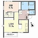 11.7帖LDK、5.7帖洋室の1LDK、独立洗面所、浴室、トイレ、ウォークインクローゼット、ワークコーナー有り