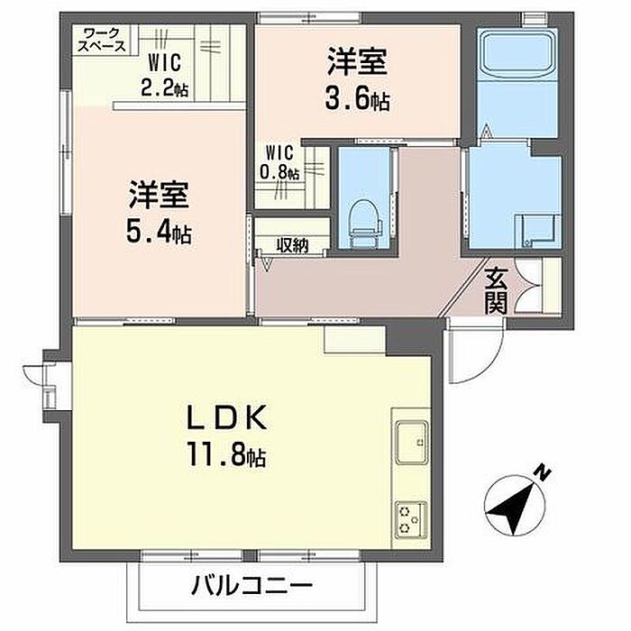 洋室3.6 洋室5.4 LDK11.8 ※1畳=1.62m2)