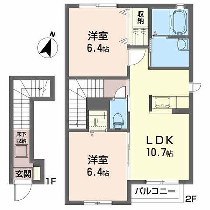 LDK10.7 洋室6.4 洋室6.4 ※1畳=1.62m2)