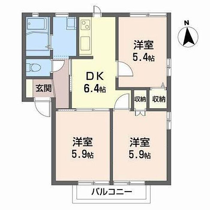 DK6.4 洋室5.9 洋室5.4 洋室5.9 ※1畳=1.62m2)