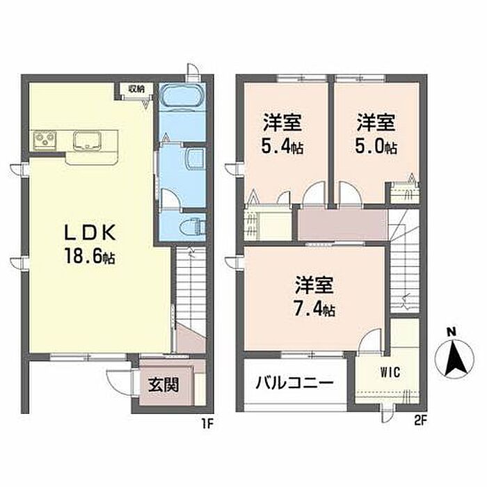 LDK18.6 洋室5 洋室5.4 洋室7.4 ※1畳=1.62m2)