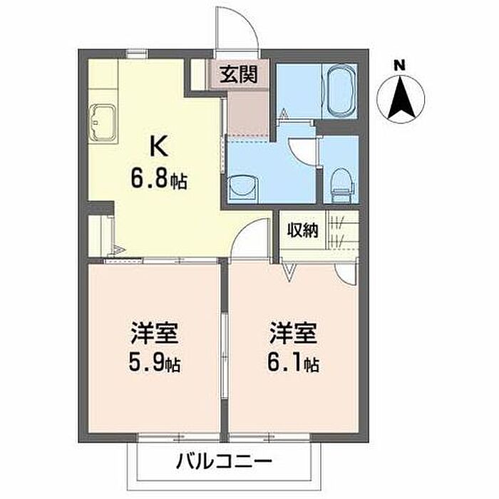 DK6.8 洋室6.1 洋室5.9 ※1畳=1.62m2)
