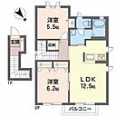 洋室6.2 洋室5.5 LDK12.5 ※1畳=1.62m2)