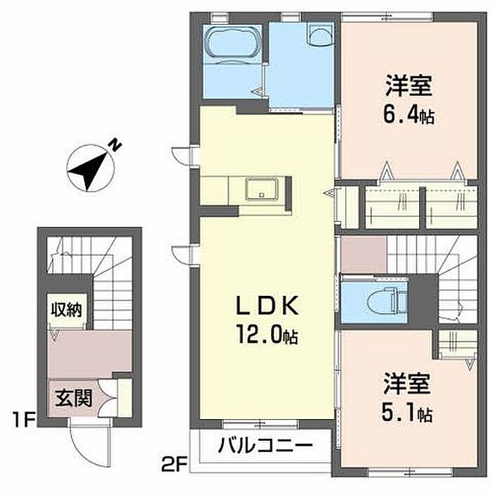 LDK12 洋室6.4 洋室5.1 ※1畳=1.62m2)