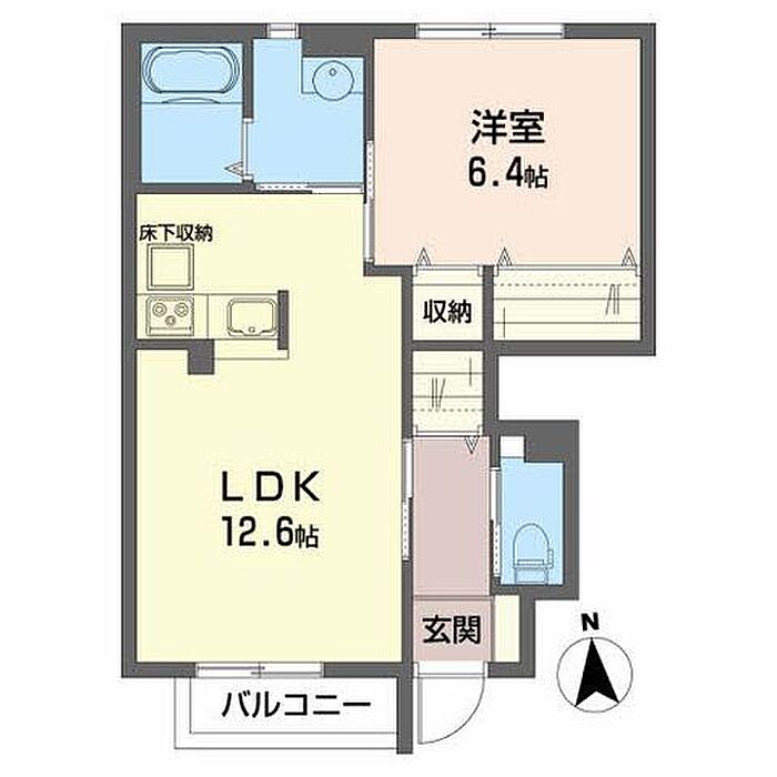 洋室6.4 LDK12.6 ※1畳=1.62m2)