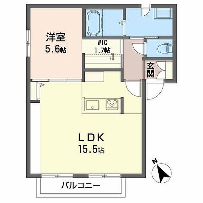 洋室5.6 LDK15.5 WIC1.7 ※1畳=1.62m2)