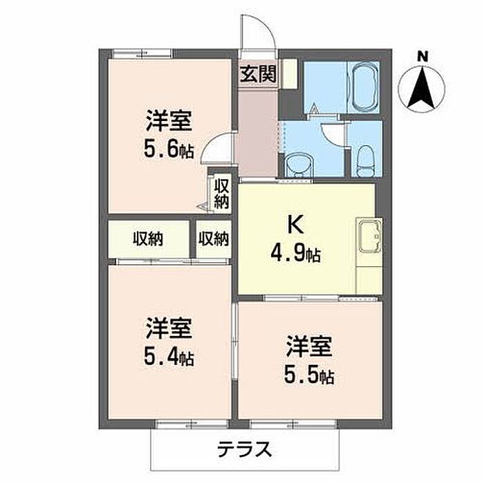 洋室5.6 洋室5.4 洋室5.5 K4.9 ※1畳=1.62m2)