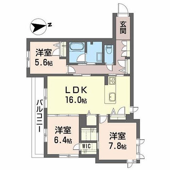 LDK16 洋室7.8 洋室6.4 洋室5.6 ※1畳=1.62m2)