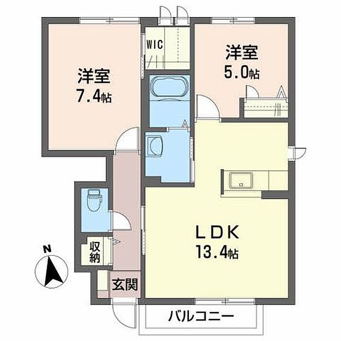 洋室7.4 洋室5 LDK13.4 ※1畳=1.62m2)