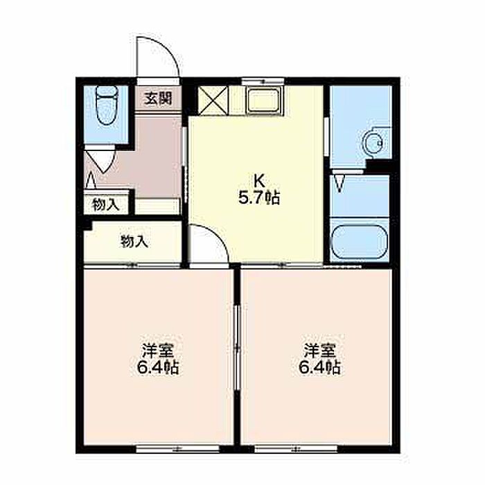 洋室6.4 洋室6.4 K5.7 ※1畳=1.62m2)