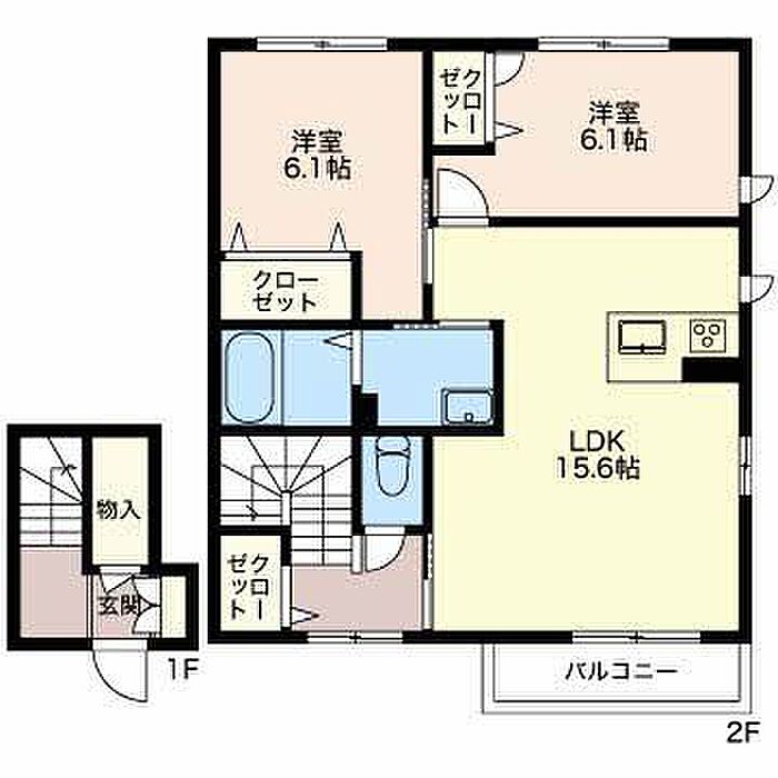 洋室6.1 洋室6.1 LDK15.6 ※1畳=1.62m2)