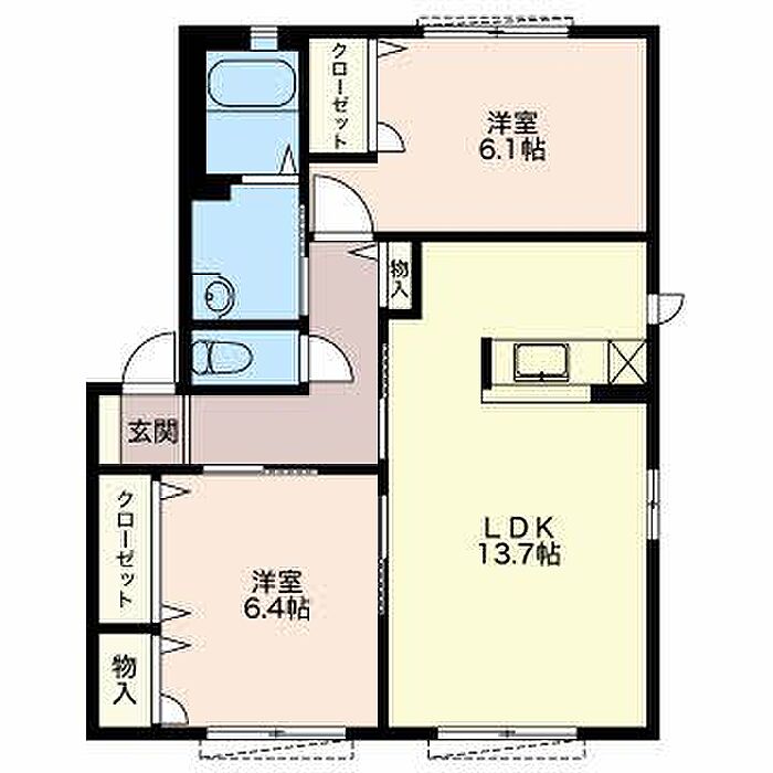 洋室6.4 洋室6.1 LDK13.7 ※1畳=1.62m2)