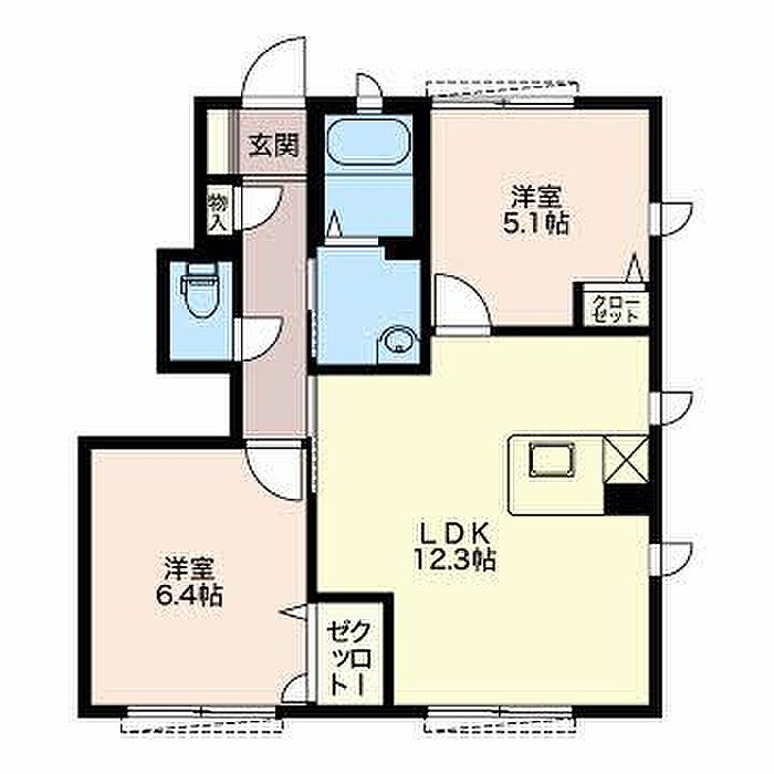 LDK12.3 洋室6.4 洋室5.1 ※1畳=1.62m2)
