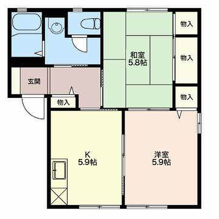 洋室5.9 和室5.8 K5.9 ※1畳=1.62m2)
