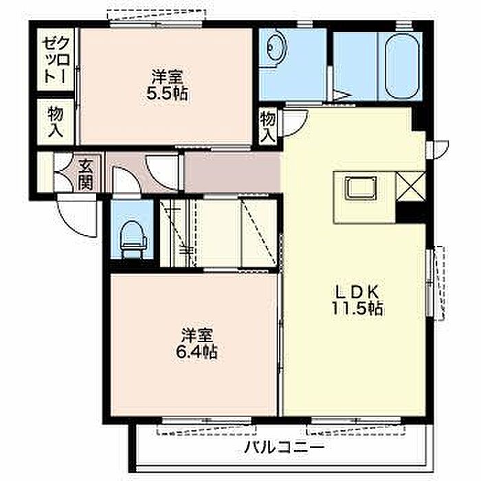 洋室6.4 洋室5.5 LDK11.5 ※1畳=1.62m2)