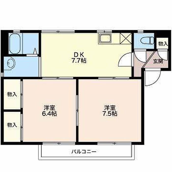 洋室7.5 洋室6.4 DK7.7 ※1畳=1.62m2)