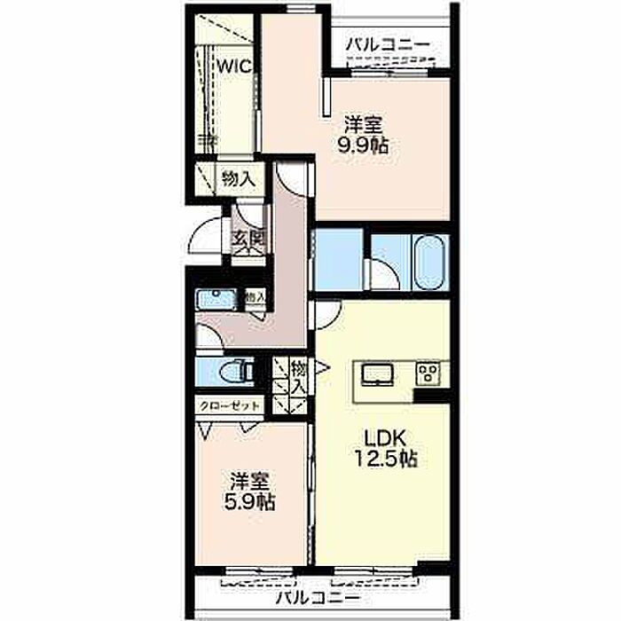 洋室9.9 洋室5.9 LDK12.5 ※1畳=1.62m2)