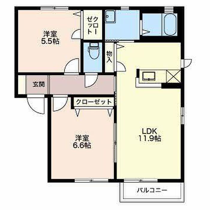 洋室6.6 洋室5.5 LDK11.9 ※1畳=1.62m2)